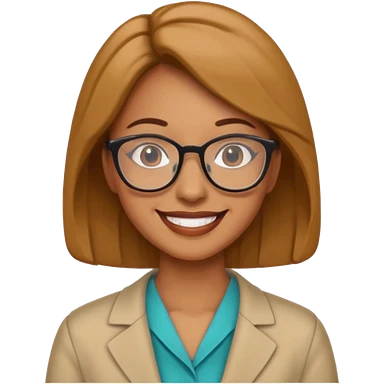 personagem com Wolf cut curto, cabelo castanho escuro, olho castanho escuro, sombrancelha castanho escuro, óculos sem aro prata. emoji
