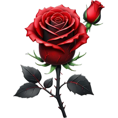 A pitch-dark obsidian-black dark gloomy gothic edgy thorny dusky rose with a black stem, it has blood splatter on it emoji