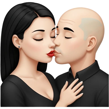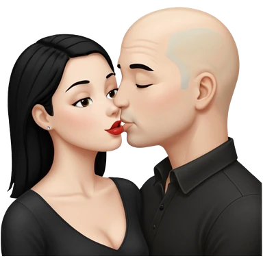 👩🏻❤️💋👨🏻 this one but the man should be bald. white woman with black hair and white bald man kissing emoji