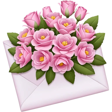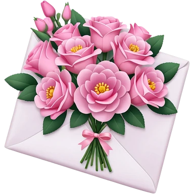 ی نامه وسط دسته گل صورتی emoji