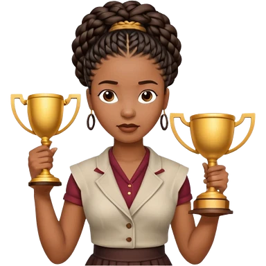 generate an emoji for this phrase, Start strong to earn trust and be noticed. End strong to be remembered. make it a black woman in braids updo looking determined with a script in hand and a trophy emoji