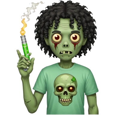 black mid long curly haired zombie getting stoned with weed t shirt and bong on his hand emoji
