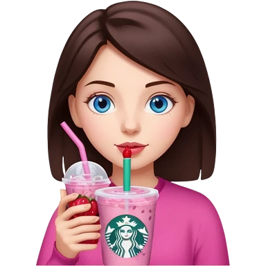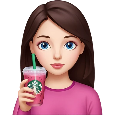 make an emoji of a brunette blue eye girl wearing pink drinking a strawberry acai refresher from starbucks emoji