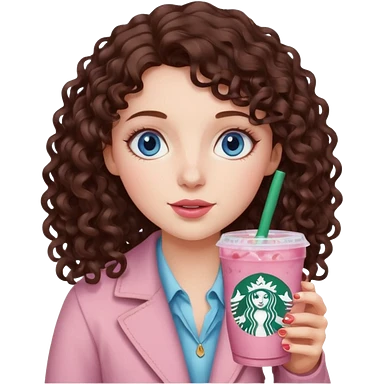 make an emoji of a loose curly brunette, blue-eye girl, wearing light pink drinking a strawberry acai refresher from starbucks emoji