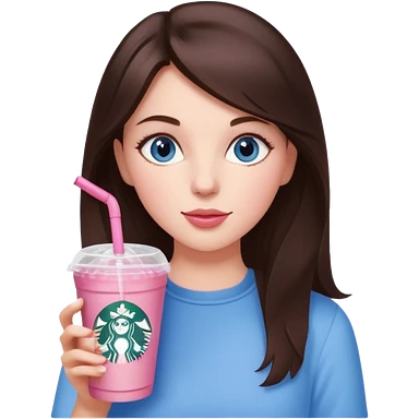 make an emoji of a brunette blue eye girl wearing light pink drinking a strawberry acai refresher from starbucks emoji