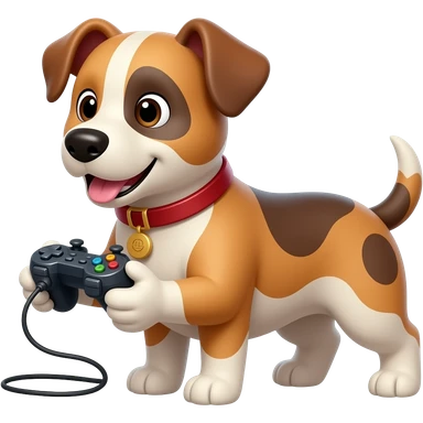 다리가 4개인 게임하는 강아지 emoji