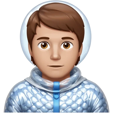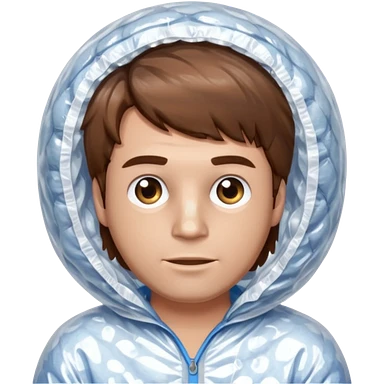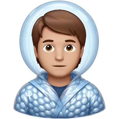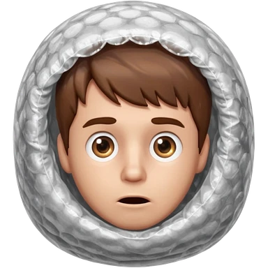 Brown haired man wrapped in a roll of bubble wrap emoji