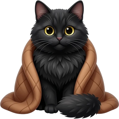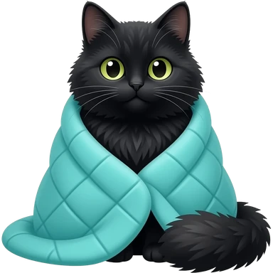Пушистый Чёрный кот в бюрюзовым пледепледе emoji