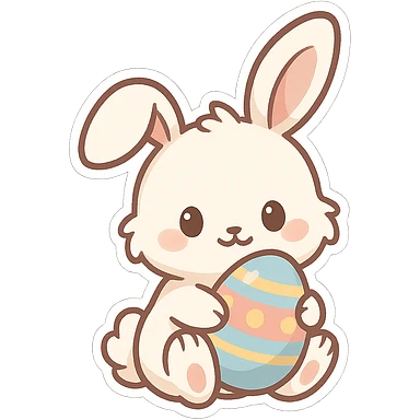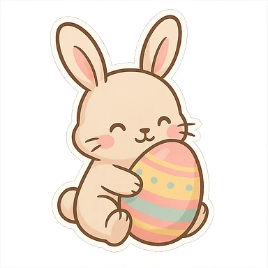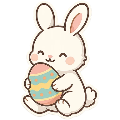 一只可爱的小兔子,怀里抱着一棵复活节的彩蛋 emoji