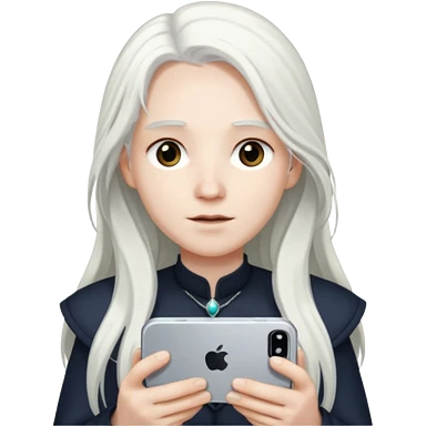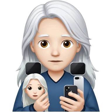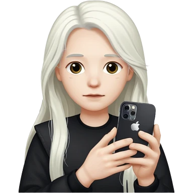 피부가 하얐고 긴 백발이고 아이폰 16프로를 들고있어 emoji