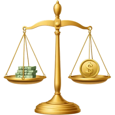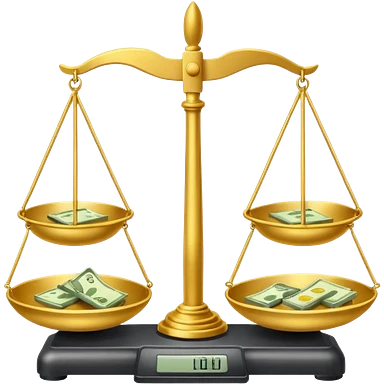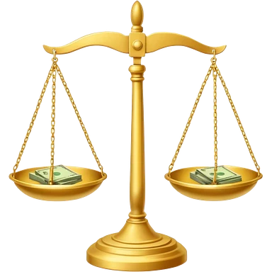Весы с чашами в одной позитивная мысль о деньгах а в другой негативная мысль о деньгах emoji