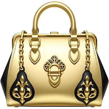 Alexander McQueen brand, black and gold handbag with luxury edgy style, detailed embellishments. 8k, 5000x5000px, 3D rendering, realistic, isolated still life, no emoji faces no emoji icons no human figures emoji