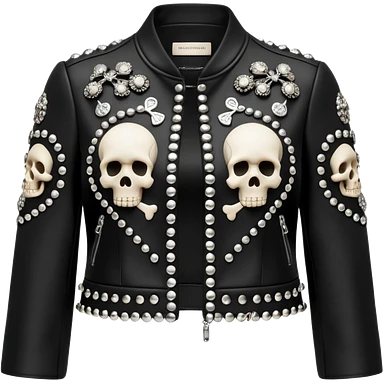 Alexander McQueen brand Cropped black detailed jacket for women, luxury edgy skull style, detailed embellishments. 8k, 5000x5000px, 3D rendering, realistic, isolated still life, no emoji faces no emoji icons no human figures emoji