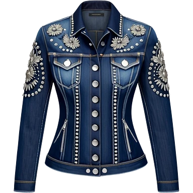 Alexander McQueen brand, fitted denim detailed jacket for women, luxury edgy style, detailed embellishments. 8k, 5000x5000px, 3D rendering, realistic, isolated still life, no emoji faces no emoji icons no human figures emoji