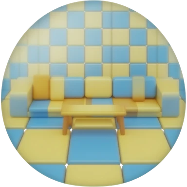 yellow blue Floor seating with cushions, transparent background inspired by barbie colour pallete emoji