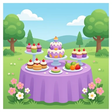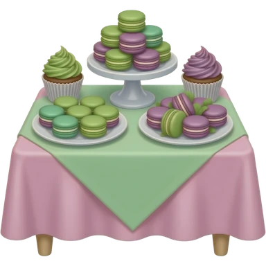 green purple Dessert table setup soft paster colour emoji