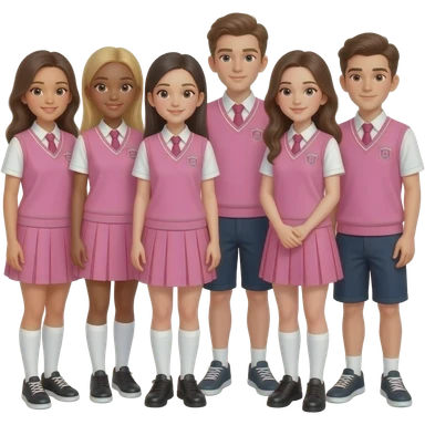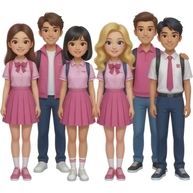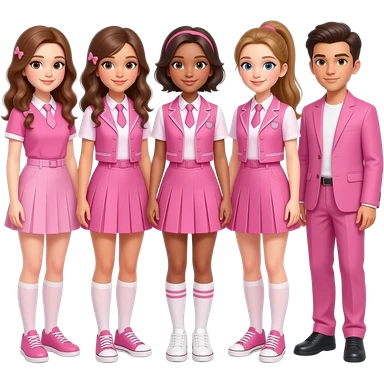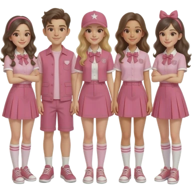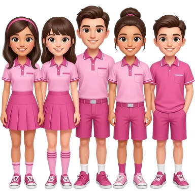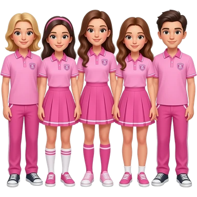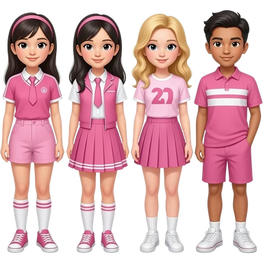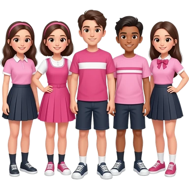 group of girls and boys wearing cool pink outfits, not uniforms emoji