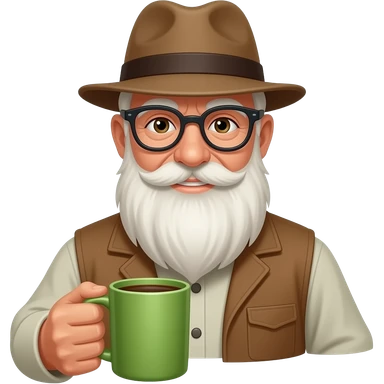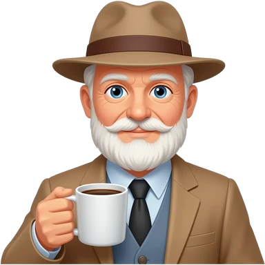 old man with hat and hold coffee mug in his left hand and visisble coffee emoji