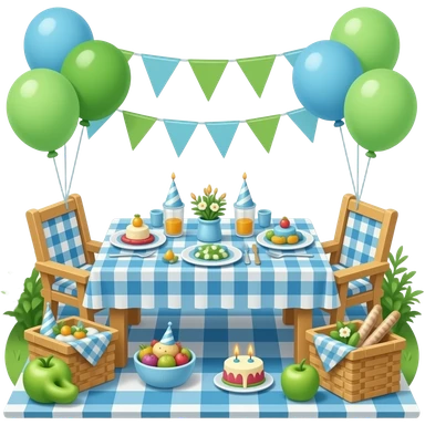 green blue Picnic-style birthday setup, transparent background inspired by barbie colour pallete emoji