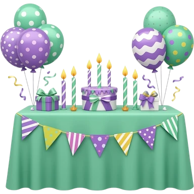 green purple Table with birthday decorations, transparent background inspired by barbie colour pallete emoji