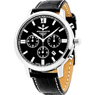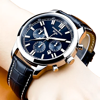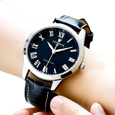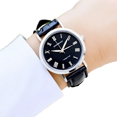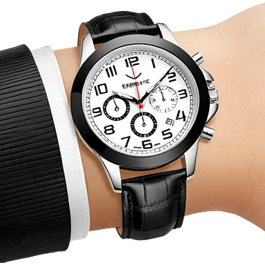 Чёрные наручные часы, у которых виден только циферблат и ремешок спереди emoji