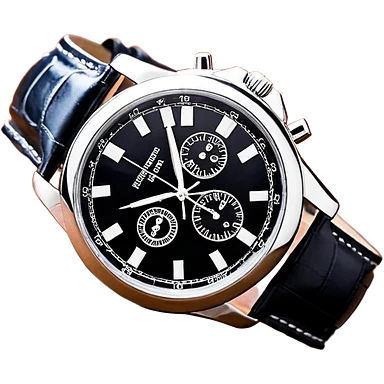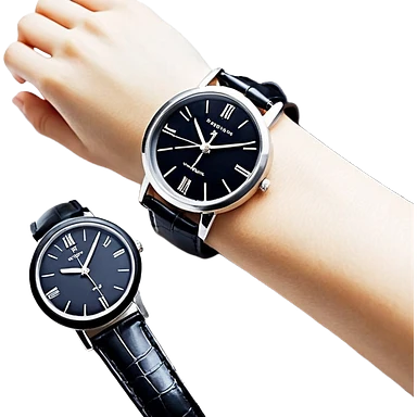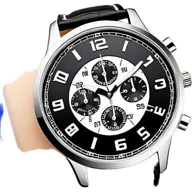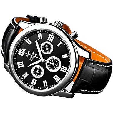 Чёрные наручные часы, у которых виден только циферблат и ремешок спереди, на чорном фоне emoji
