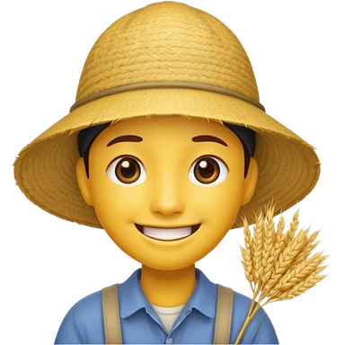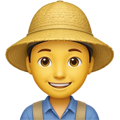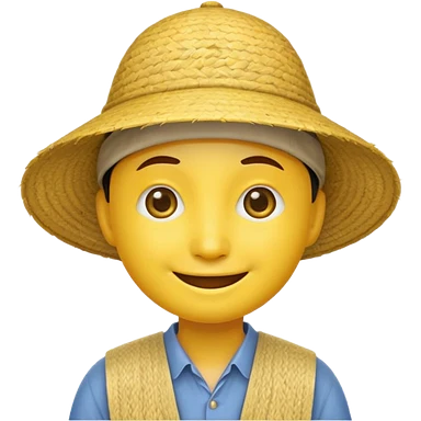 Yellow emoji smiley face with stereotypical Chinese facial features and rice farmer hat emoji