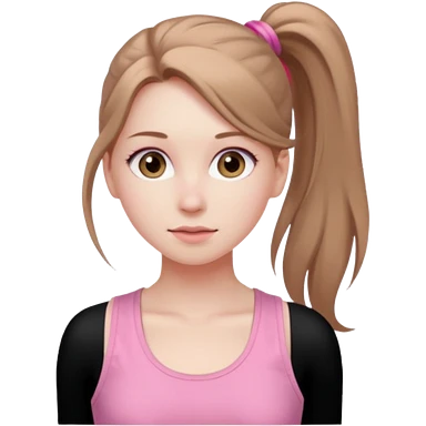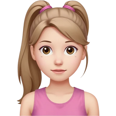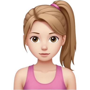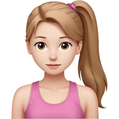Девушка, бледная кожа, светло русые, длинные волосы, собранные в хвост, серые глаза, розовая майка без рукавов emoji