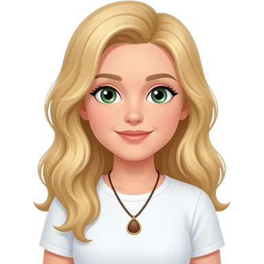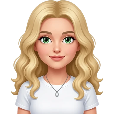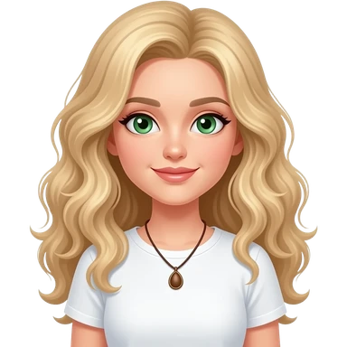 long blonde a little curl hair green eyes wearing white T-shirt, necklace emoji