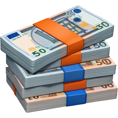neatly stacked banknotes in 5 euro (grey), 10 euro, (red), 20 euro (blue), and 50 euro (orange) spread out so you can see each individual note. crisp paper texture, vibrant distinct colours emoji
