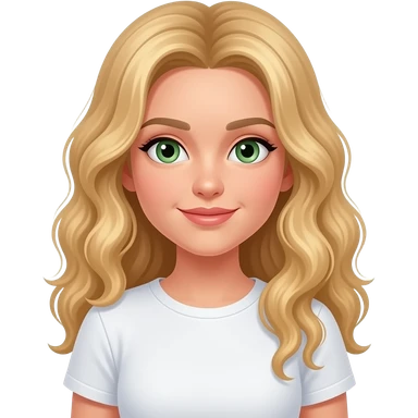 long blonde curl hair green eyes wearing white T-shirt, neckless emoji