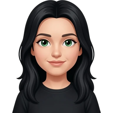 long black hair green eyes wearing black T-shirt, 17c face emoji