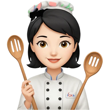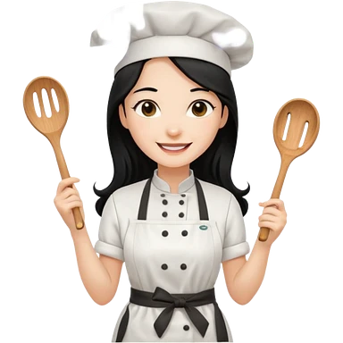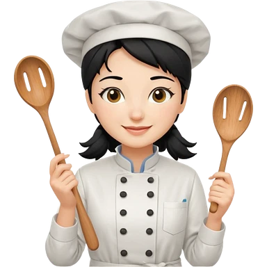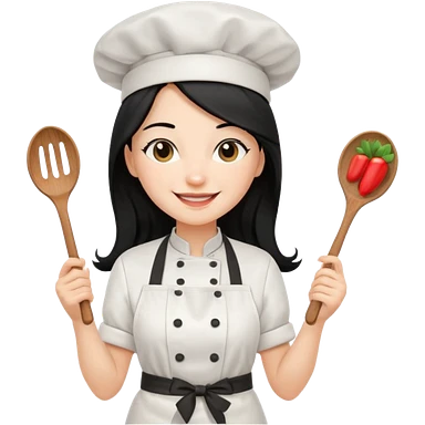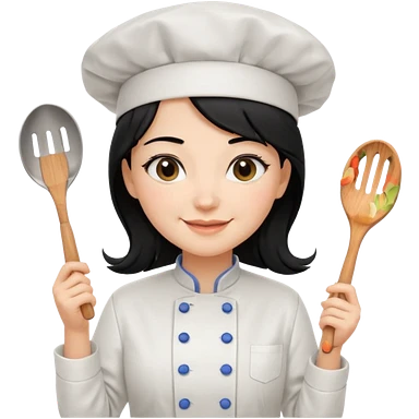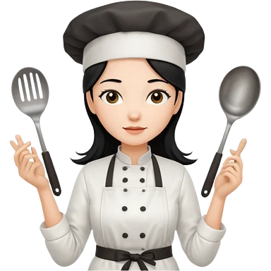 조리도구 든 대사관하얀 검정 긴머리 여자요리사 emoji