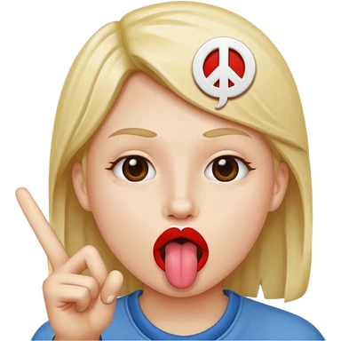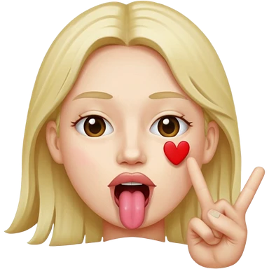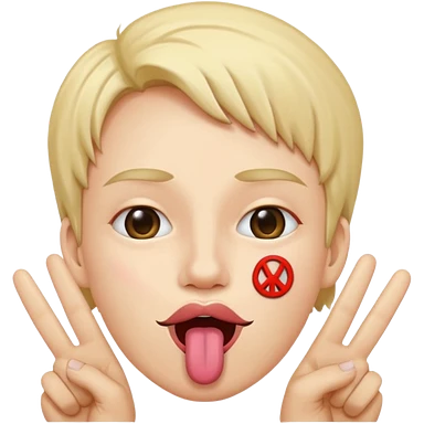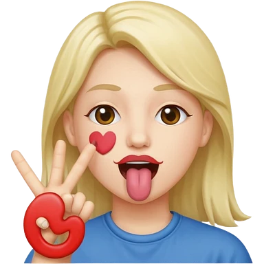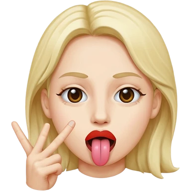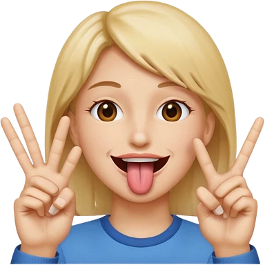 Peace sign in front of mouth with tongue sticking out emoji