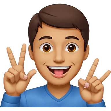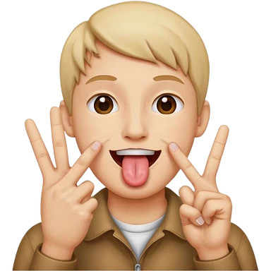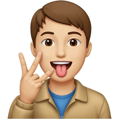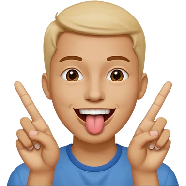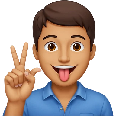 Man making v shape with fingers and tongue sticking out of mouth emoji