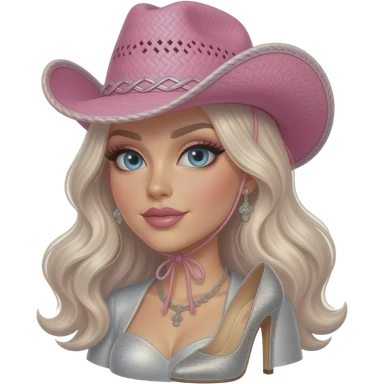 Silver glitter high heels -hold up thigh high stockings female- pink cowboy hat - sexy emoji