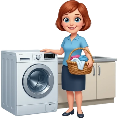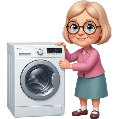 old lady.slim.small. has very close cropped red hair. in love with her new washing machine emoji