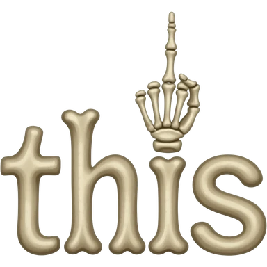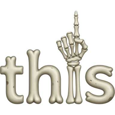 Text "this" made of bones, with skeleton hand behind it pointing a finger up. emoji