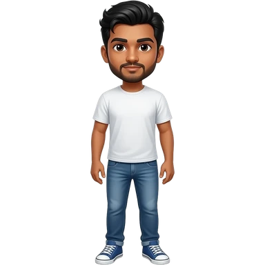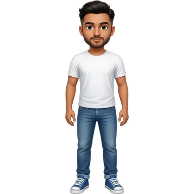 25 year old indian man fade hair cut white t-shirt denim jeans and blue sneakers emoji