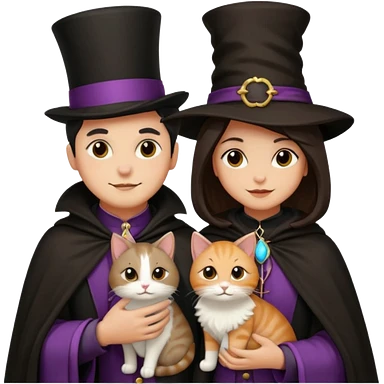 magician couple and their pet cat emoji