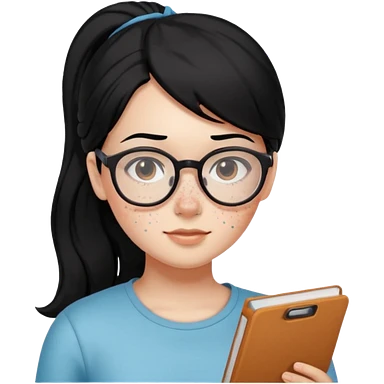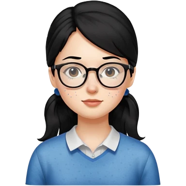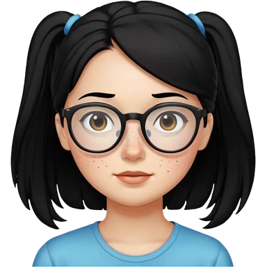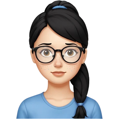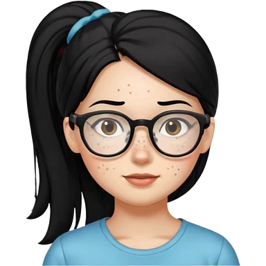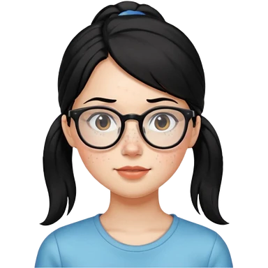 안경 쓰고있는 검은색 머리 한쪽만 포니테일하고 잇는 여자애를 그려줘 주근깨도 emoji
