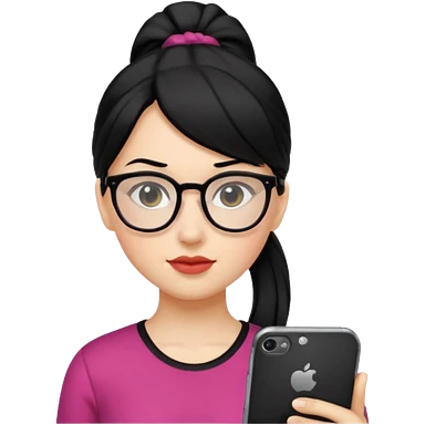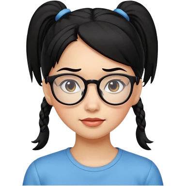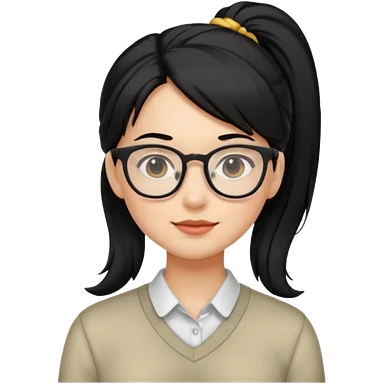 안경 쓰고있는 검은색 머리 포니테일하고 잇는 여자애를 그려줘 emoji | AI Emoji Generator