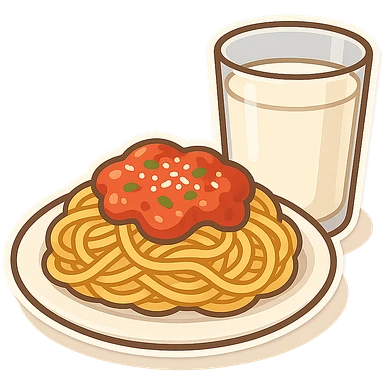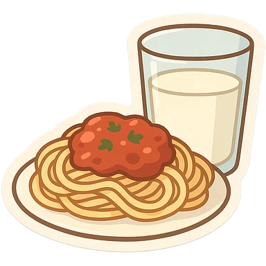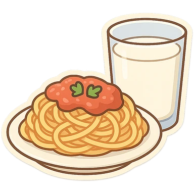 一盘意大利面和一杯牛奶 emoji