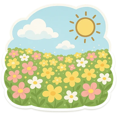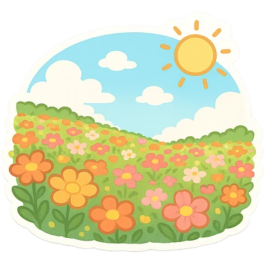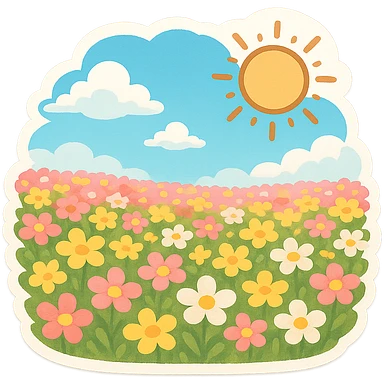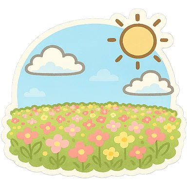 一片花海,蓝天,白云,太阳 emoji