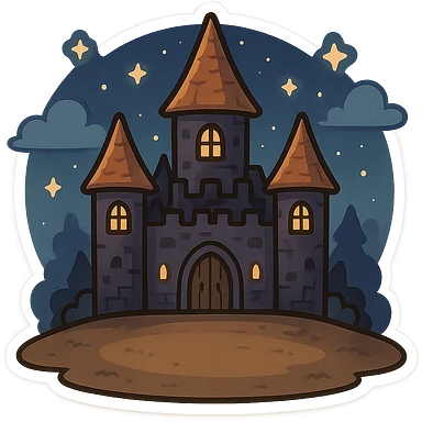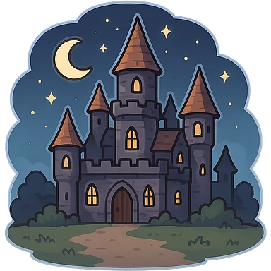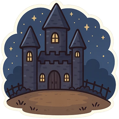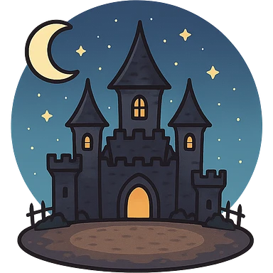 一个万圣节古堡,中间有一片空地,夜晚,星空 emoji
