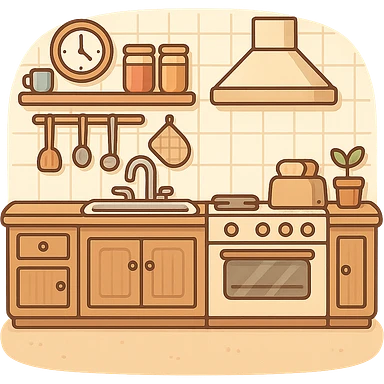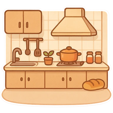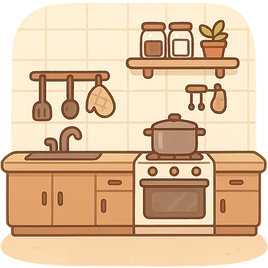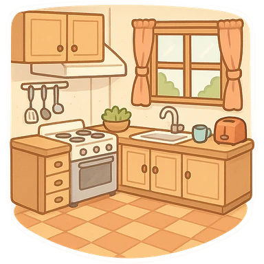 一个温馨的厨房,前面是片空地 emoji