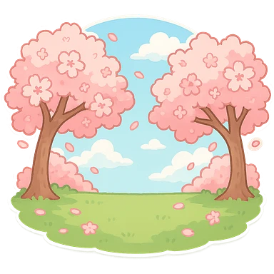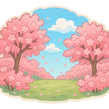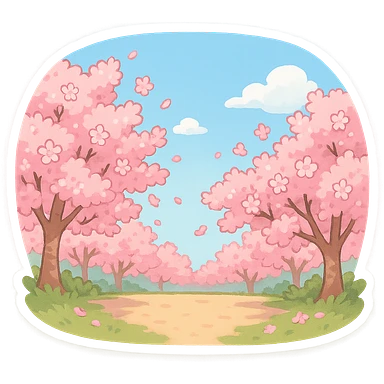 满是樱花的场景,中间一片空地,蓝天白云 emoji