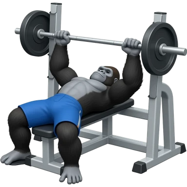 горила качок робить жим лежачи, вона в шортах під кутом emoji