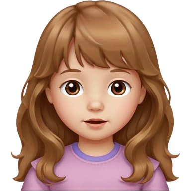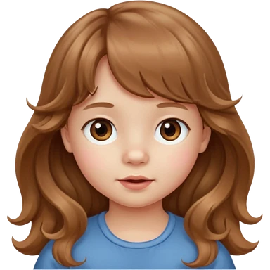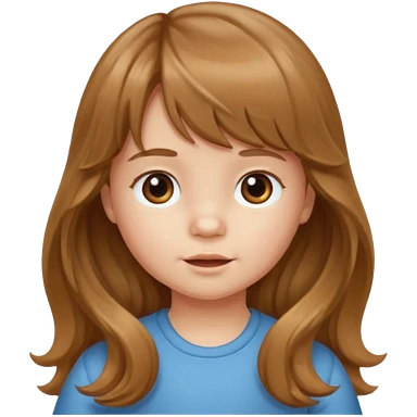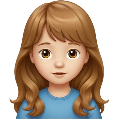 Please generate a portrait of a toddler with long, wavy, light brown hair and bangs. emoji