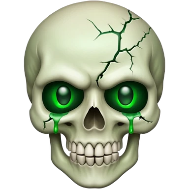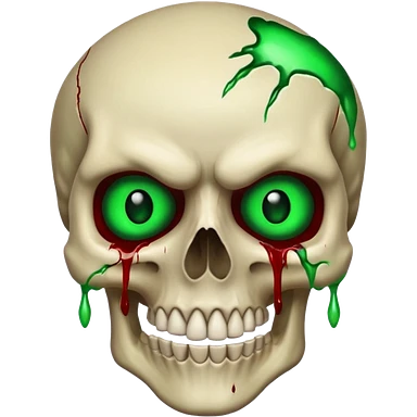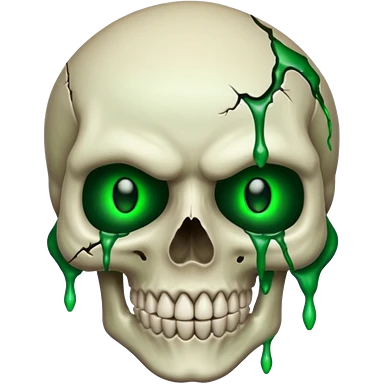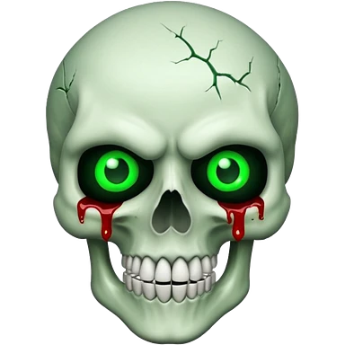 Bleeding skull with glowing green eyes and a sinister smile emoji